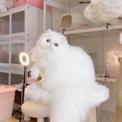 波斯猫又名长毛猫。躯干健壮滚圆;头部圆而宽,脸颊丰满;耳朵尖而小,鼻子短,眼睛大而圆;四肢粗短,脚爪大而圆;尾短而尾毛蓬松;眼色多数为黄色;被毛丰满且具光泽;被毛为双层毛,由长而柔软蓬松的底毛和稍长而粗糙的长毛组成,具有多种颜色和被毛式样。