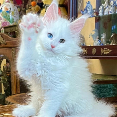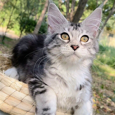 缅因猫是美国最大、最古老的猫种。缅因猫体型较大,被毛厚密;头较小巧,面部较方,耳朵大而直,耳根较阔,眼睛较大,有绿色、金黄色和铜色;鼻子中长,形似狮子鼻;四肢又粗又圆,被毛细密的爪子强壮有力;尾巴根部粗壮,末端被毛较长,尖削。缅因猫名字中的“coon”在英语中意为浣熊,或许人们给它取这个名字就是因为它那毛发浓密的尾巴很像小浣熊的尾巴。